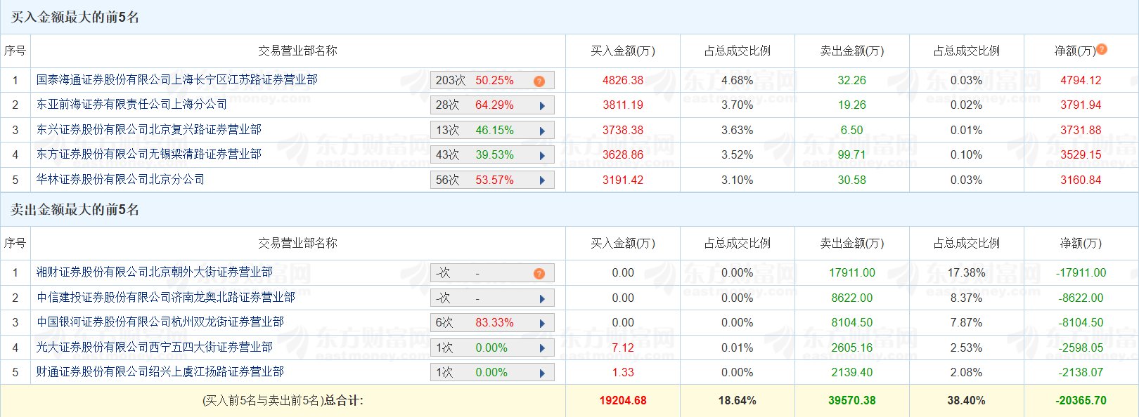 龙虎榜丨海看股份20%涨停,湘财证券北京朝外大街营业部净卖出1.79亿元