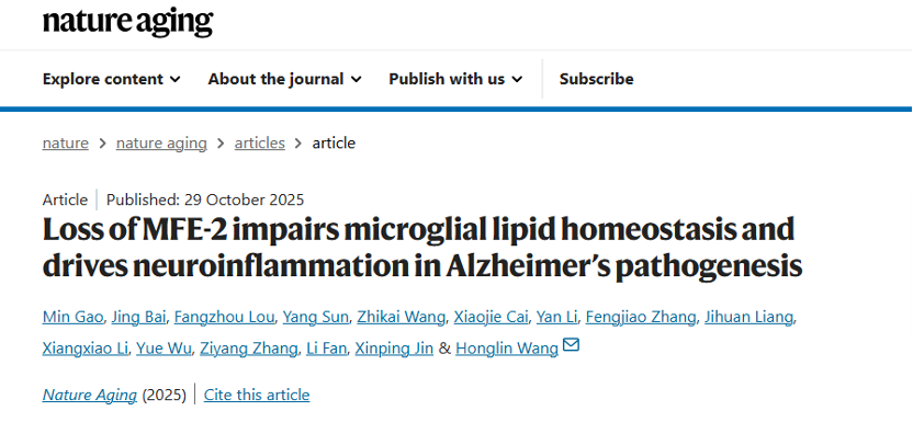该研究在机制层面首次揭示了"脂质代谢—小胶质细胞活化—神经炎症"这一"脂—炎"轴在阿尔茨海默病中的关键环 节,明确了全新靶点MFE-2作为交叉节点的靶向价值,为干预阿尔茨海默病的创新药研发奠定理论基础,也证实了泰 恩康1.1类创新药CKBA作为新一代天然产物来源靶向免疫代谢的小分子候选药物的开发潜力。 口服CKBA可有效穿越血脑屏障,无明显毒副作用,具备良好药代动力学性质,并在阿尔茨海默病模型小鼠中表现出 多重治疗效应,包括改善认知功能、降低神经炎症水平、减少Aβ斑块负担和减轻焦虑行为。 2025年10月29日,泰恩康(301263)FIC创新小分子CKBA发明人、上海交通大学医学院附属第一人民医院王宏林团队 在国际顶级期刊《Nature Aging》(专注老龄化研究领域的《Nature》子刊, IF2024=19.4)在线发表题为《Loss of MFE-2 impairs microglial lipid homeostasis and drives neuroinflammation in Alzheimer's pathogenesis 》的研究论文。 阿尔茨海默病(Alzheimer's Disea ...