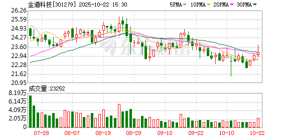 Group 1 - The core viewpoint of the news is that Jindao Technology has shown a significant increase in stock price and financial performance, indicating potential growth in the industrial vehicle sector [1][2]. - As of October 22, Jindao Technology's stock price increased by 2.05% to 23.45 CNY per share, with a market capitalization of 3.042 billion CNY [1]. - The company has experienced a year-to-date stock price increase of 52.64%, with a recent 5-day increase of 2.13% [1]. Group 2 - For the first half of 2025, Jindao Technology reported a revenue of 352 million CNY, representing a year-on-year growth of 9.69% [2]. - The net profit attributable to the parent company for the same period was 32.026 million CNY, showing a significant year-on-year increase of 46.35% [2]. - The company has distributed a total of 106 million CNY in dividends since its A-share listing [3].