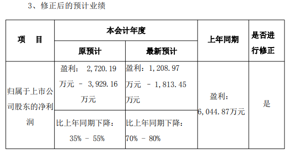 中国经济网北京2月25日讯 科源制药(301281.SZ)昨晚披露的2025年度业绩预告修正公告显示,公司 修正后的预计业绩为归属于上市公司股东的净利润1,208.97万元至1,813.45万元,比上年同期下降70%至 80%;扣除非经常性损益后的净利润2,011.71万元至2,905.81万元,比上年同期下降35%至55%。 | 项 | 目 | 本会计年度 | | 上年同期 | 是否进 | | --- | --- | --- | --- | --- | --- | | | | 厦预计 | 最新预计 | | 行修正 | | 归属于上市公 司股东的净利 | | 盈利: 2. 720. 19 万元 - 3.929.16 万元 | 盈利: 1,208.97 万元 - 1,813.45 | 盈利: | 是 | | | | | 力元 | 6,044.87万元 | | | 润 | | 比上年同期下降: | 比上年同期下降: | | | | | | 35% - 55% | 70% - 80% | | | | 扣除非经常性 盈利: 2,011.71 万 盈利: 2,011.71 万 | | | | | | --- | --- ...
