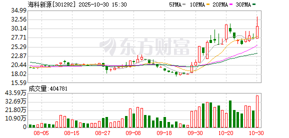 海科新源10月30日获融资买入1.24亿元,融资余额2.17亿元