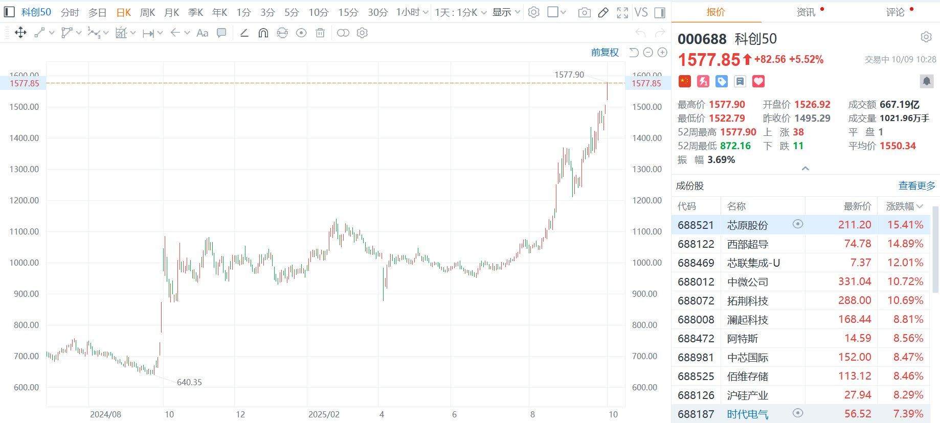 科创50大涨超5%!中芯国际、华虹公司、江波龙、灿芯股份、芯联集成等多只芯片股创历史新高,西部超导、芯原股份均涨超15%