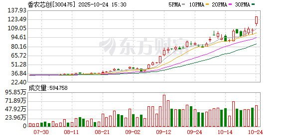 A股今日(10月24日)集体拉升,沪指盘中续创10年新高;创业板指、科创50指数大幅走高;港股亦 走强,恒生科技指数涨近2%。 具体来看,两市主要股指盘中强势上扬,创业板指涨超3%,科创50指数大涨超4%。截至收盘,沪指涨 0.71%报3950.31点,深证成指涨2.02%报13289.18点,创业板指涨3.57%报3171.57点,科创50指数涨 4.35%,沪深北三市合计成交19918亿元,较此前一日增加逾3300亿元。 场内超3000股飘红,半导体、芯片概念爆发,普冉股份、香农芯创20%涨停,江波龙涨超16%,均创历 史新高;寒武纪涨约9%重返1500元上方,股价再次超越贵州茅台;CPO概念等AI产业链股集体走高,科 翔股份、生益电子20%涨停,中际旭创续创新高;卫星导航概念崛起,中国卫星、广合科技、上海沪工等 涨停;煤炭板块大幅回落,安泰集团、云煤能源跌停,大有能源跌超6%。此外,今日登陆沪市主板的超 颖电子大涨近400%报84.99元/股,盘中最高攀升至99.77元/股,涨幅达484%,以盘中最高价计算,该股 单签盈利超4.1万元。 值得注意的是,今日A股市场共有10只个股的成交额超过了100亿元, ...