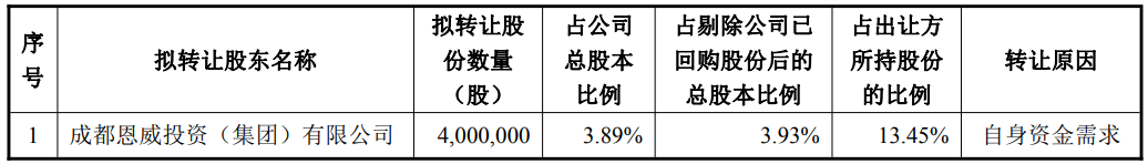 恩威医药(301331.SZ):股东拟询价转让3.89%股份