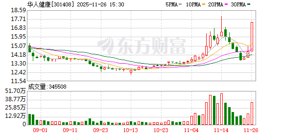 龙虎榜 华人健康上涨20.00%,知名游资海通上海静安区新闸路买入7982.53万元