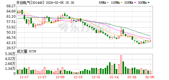 开创电气跌0.02%,成交额4281.95万元,今日主力净流入306.17万