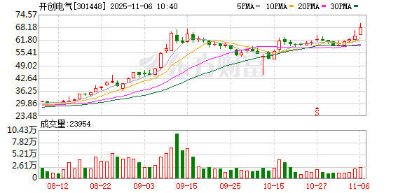 开创电气涨2.80%,成交额1.42亿元,今日主力净流入615.58万