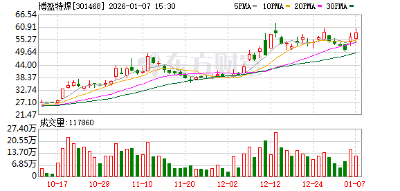博盈特焊1月7日现1笔大宗交易 总成交金额861.3万元 溢价率为-1.31%