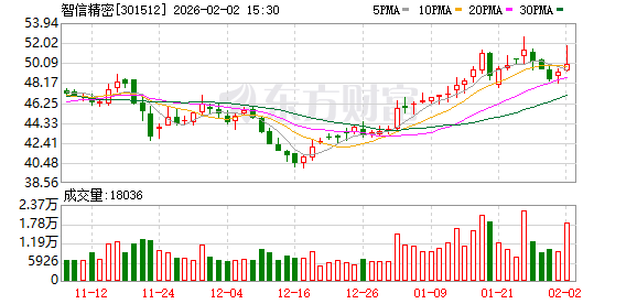 2月2日,智信精密涨5.02%,截至发稿,报51.68元/股,成交5861.07万元,换手率4.66%,总市值27.56 亿元。 招商中证2000指数增强A(019918)基金经理为王平、刘浒。 截至发稿,王平累计任职时间15年230天,现任基金资产总规模214.46亿元,任职期间最佳基金回报 304.6%, 任职期间最差基金回报-70.61%。 刘浒累计任职时间134天,现任基金资产总规模15.85亿元,任职期间最佳基金回报11.89%, 任职期间 最差基金回报8.88%。 声明:市场有风险,投资需谨慎。 本文基于第三方数据库自动发布,不代表新浪财经观点,任何在本 文出现的信息均只作为参考,不构成个人投资建议。如有出入请以实际公告为准。如有疑问,请联系 biz@staff.sina.com.cn。 责任编辑:小浪快报 资料显示,深圳市智信精密仪器股份有限公司位于广东省深圳市龙华区观澜街道大富社区建优路8号精 密智造大厦2栋厂房101,成立日期2012年3月2日,上市日期2023年7月20日,公司主营业务涉及主要从 事自动化设备、自动化线体及夹治具产品的研发、设计、生产、销售和相关技术服务,并为客户实现生 产 ...