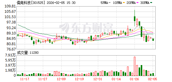 儒竞科技跌9.04% 2023年上市即巅峰超募11.7亿元