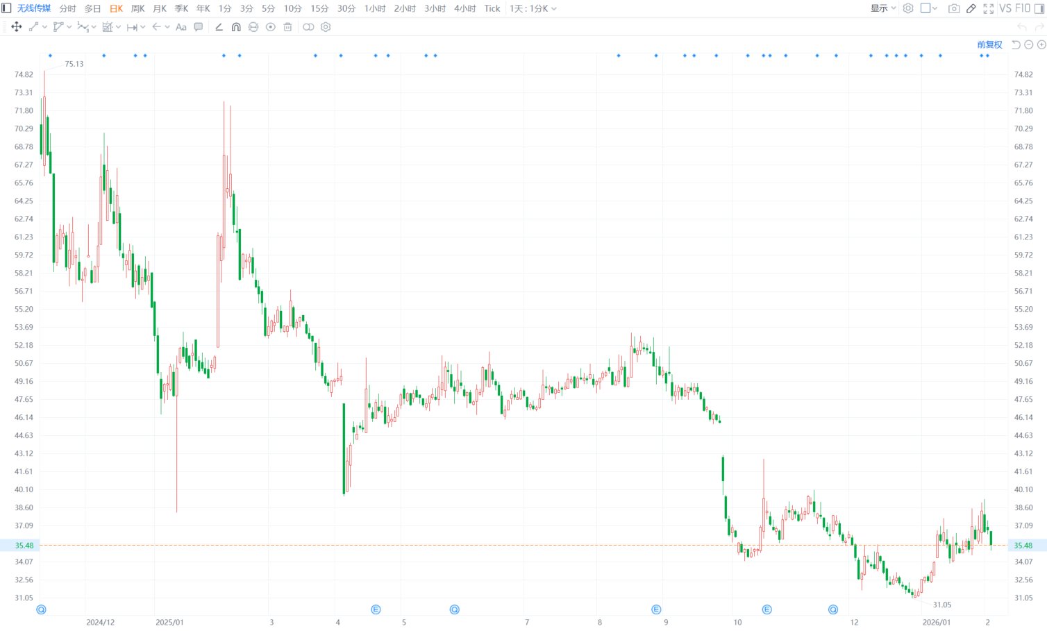 格隆汇2月4日|无线传媒(301551.SZ)跌4.57%报35.05元。无线传媒公告,文盛基金及其一致行动人于2025年12月16日至2026年1月30日通过大宗交易和集中 竞价合计减持1599.99万股,占总股本4%;旅投基金于2025年12月16日至2025年12月26日减持281.65万股,占总股本0.7%。本次减持计划已完成。(格隆汇) ...