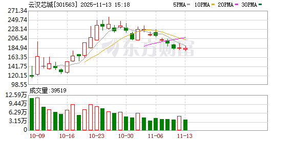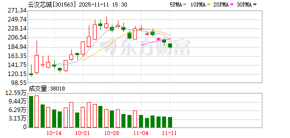 资料显示,云汉芯城(上海)互联网科技股份有限公司位于上海市松江区千帆路237弄9号11层-13层,成立 日期2008年5月7日,上市日期2025年9月30日,公司主营业务涉及通过有效运用数字技术和互联网技术, 基于自建自营的云汉芯城B2B线上商城,主要为电子制造产业提供高效、专业的电子元器件供应链一站 式服务,并延伸至产品技术方案设计、PCBA生产制造服务、电子工程师技术支持等在内的多个领域。主 营业务收入构成为:半导体器件56.14%,连接器17.35%,被动器件16.05%,其他10.19%,其他(补 充)0.27%。 融资方面,云汉芯城当日融资买入4486.18万元。当前融资余额1.57亿元,占流通市值的6.17%。 融券方面,云汉芯城11月11日融券偿还0.00股,融券卖出0.00股,按当日收盘价计算,卖出金额0.00 元;融券余量0.00股,融券余额0.00元。 11月11日,云汉芯城跌6.34%,成交额7.08亿元。两融数据显示,当日云汉芯城获融资买入额4486.18万 元,融资偿还4480.40万元,融资净买入5.78万元。截至11月11日,云汉芯城融资融券余额合计1.57亿 元。 截至9月30 ...
