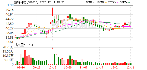 12月16日,富特科技大宗交易成交13.52万股,成交额489.96万元,占当日总成交额的6.22%,成交价 36.24元,较市场收盘价39.61元折价8.51%。 | 交易日期 | 证券代码 | 证券简称 | 成交价格 | 成交量 | 成交金额 | 买方营业部 | 卖方营业部 | | --- | --- | --- | --- | --- | --- | --- | --- | | | | | (元) | (万股/万份) | (万元) | | | | 2025-12-16 | 301607 | 富特科技 | 36.24 | 8.00 | 289.92 机构专用 | | 中信证券股份有限 | | | | | | | | | 公司湖南分公司 | | 2025-12-16 | 301607 | 富特科技 | 36.24 | 5.52 | 200.04 机构专用 | | 中信证券股份有限 | | | | | | | | | 公司湖南分公司 | ...