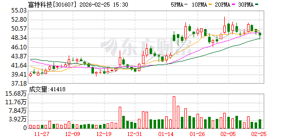 截至1月30日,富特科技股东户数1.09万,较上期减少9.77%;人均流通股10291股,较上期增加 10.83%。2025年1月-9月,富特科技实现营业收入25.59亿元,同比增长116.31%;归母净利润1.37亿元, 同比增长65.94%。 分红方面,富特科技A股上市后累计派现199.83万元。 机构持仓方面,截止2025年9月30日,富特科技十大流通股东中,广发价值核心混合A(010377)、财 通资管先进制造混合发起式A(021985)、财通资管臻享成长混合A(016605)退出十大流通股东之 列。 声明:市场有风险,投资需谨慎。本文基于第三方数据库自动发布,不代表新浪财经观点,任何在本文 出现的信息均只作为参考,不构成个人投资建议。如有出入请以实际公告为准。如有疑问,请联系 biz@staff.sina.com.cn。 2月9日,富特科技跌3.15%,成交额2.83亿元。两融数据显示,当日富特科技获融资买入额2813.41万 元,融资偿还2382.13万元,融资净买入431.28万元。截至2月9日,富特科技融资融券余额合计1.20亿 元。 融资方面,富特科技当日融资买入2813.41万元。当前融资 ...