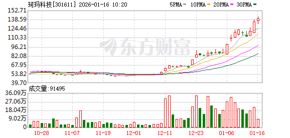 珂玛科技股价又创新高,今日涨3.10%