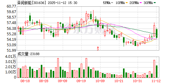 泽润新能11月12日获融资买入1430.57万元,融资余额5559.47万元