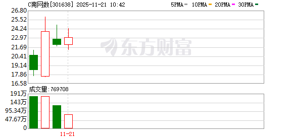 11月18日,南方电网数字电网研究院股份有限公司在深交所正式挂牌上市,上市首日开盘涨261.51%, 截至收盘涨幅回落至224.78%。 11月19日,次新股C南网数字午后涨超30%,该股早盘一度触发临停。 编辑丨瑜见 ...