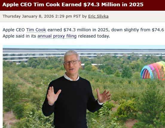 库克2025年薪酬7430万美元,核心高管薪酬同步曝光