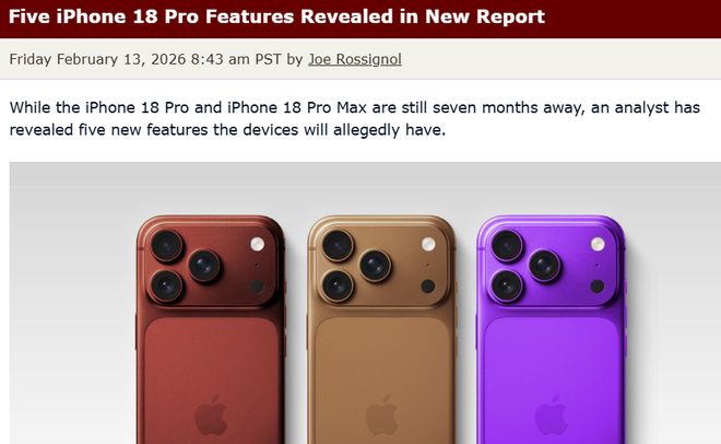 iPhone 18 Pro五大新功能曝光 2nm芯片+可变光圈领衔升级