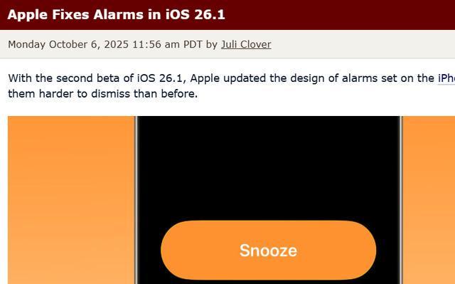 苹果iOS 26.1升级:滑动停止闹钟,告别误关烦恼