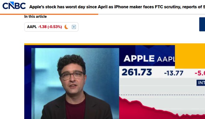 Core Viewpoint - Apple experienced a significant decline in its stock price, marking its worst day in approximately 10 months, primarily due to delays in its AI developments and regulatory scrutiny from the FTC [1][9]. Group 1: Stock Performance - On February 12, Apple shares initially showed strong performance, being the only smartphone maker to grow in China in January [1]. - However, the stock plummeted 5% from $275.50 to $261.73, closing at $261.73, and continued to decline by 0.53% in after-hours trading, reaching $260.35 [2][1]. Group 2: AI Development Delays - Apple is postponing its anticipated AI update for the Siri personal assistant, which is seen as detrimental given the company's late entry into the AI market [5]. - The delay is particularly concerning as AI is a critical component in many bullish forecasts for 2026 [6]. Group 3: Regulatory Scrutiny - The stock's decline was exacerbated by news of regulatory scrutiny from the Federal Trade Commission (FTC), which is investigating Apple's terms of service and allegations of censoring conservative voices on Apple News [9]. - This scrutiny comes amid a broader trend of litigation against media firms by the Trump administration [10].