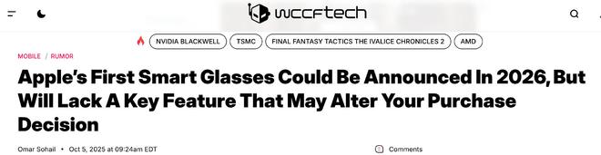 Core Insights - Apple is shifting its strategy towards wearable devices, focusing on the development of smart glasses, with plans to release the first model, "Apple Glass," by the end of 2026 [1][2] - The smart glasses will compete directly with Meta's Ray-Ban smart glasses, which have already gained traction in the market since their launch in 2023 [2] Product Development - Apple is developing a dedicated low-power chip for the smart glasses, optimized based on the Apple Watch technology architecture, to support independent AI tasks [2] - The second-generation product is expected to launch after 2028, featuring a single-sided AR display and capabilities for spatial video recording and holographic information overlay [2] Market Context - Meta's Ray-Ban smart glasses have quickly captured the fashion-tech market with features like a 12MP camera, five-microphone array, directional audio, and real-time translation since their introduction [2] - The second-generation Ray-Ban glasses have improved battery life to six hours and introduced a sports version, starting at a price of $299 [2] Strategic Shift - This strategic adjustment is seen as a key decision during CEO Tim Cook's tenure, especially after the Vision Pro headset faced challenges due to its high price and bulky design [2] - Cook has emphasized in high-level meetings that smart glasses are central to Apple's ecosystem for the next decade [2]