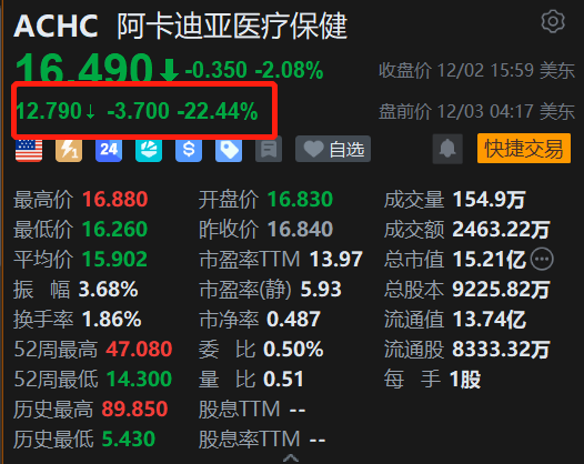 美股异动丨阿卡迪亚医疗保健盘前大跌超22% 下调2025年业绩指引