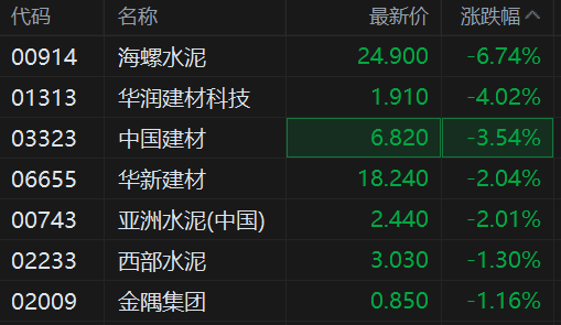 港股异动丨建材水泥股走低 海螺水泥跌近7% 行业整体仍面临深刻调整