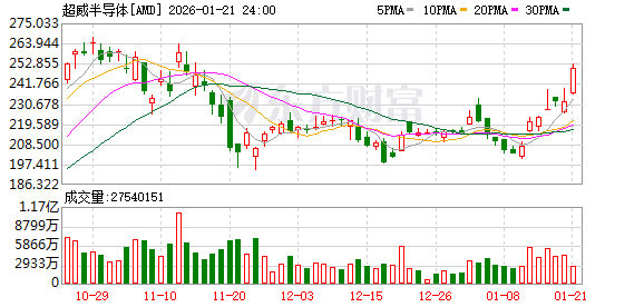 (文章来源:每日经济新闻) 每经AI快讯,1月21日,AMD股价涨幅扩大至8%,股价创11月中旬以来新高。 ...