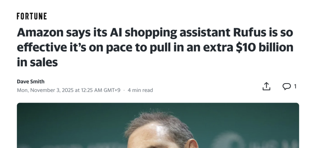 【环球网科技综合报道】若你对亚马逊能否成功将人工智能转化为商业收益仍存疑虑,这家电商公司用一项数据给出了回应:据估计,其AI购物助手Rufus 每年有望为公司带来100亿美元的增量销售额。 在近日举行的第三季度财报电话会议上,亚马逊首席执行官安迪·杰西公布了这一预测,并分享了反映该工具对消费者行为影响持续增强的最新数据。杰西 透露,今年已有2.5亿消费者使用过Rufus,其月活跃用户数同比增长140%,用户互动量同比上升210%。 根据财报,亚马逊第三季度营收同比增长13%,达到1802亿美元,超出分析师预期的1778亿美元。其云计算业务亚马逊网络服务营收增长20%,达330亿美 元,创下自2022年以来的最快增速。 Rufus于2024年2月以测试版形式推出,是一款直接集成在亚马逊移动应用和网站中的购物助手。该助手基于亚马逊完整产品目录、客户评论、社区问答及全 网信息进行了全面训练。消费者可通过它进行广泛的产品比较——例如对比越野跑鞋与公路跑鞋的差异,也可针对具体商品提问,如某款外套是否适合冬季 穿着。 《财富》报道认为,Rufus体现了亚马逊的一项关键战略:将用户留在自有生态系统中,避免其流向谷歌等搜索引 ...