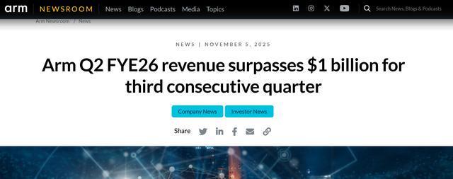 Core Insights - Arm reported a revenue of $1.14 billion for Q2 of FY2026, marking a 34% year-over-year increase and maintaining over $1 billion in revenue for three consecutive quarters [1][3] - The revenue breakdown shows royalty income of $620 million, up 21% year-over-year, indicating strong growth in core business, while licensing and other income reached $515 million, a significant increase of 56% compared to the previous year [1] Company Performance - The company's non-GAAP EPS exceeded previous guidance, reflecting a strong performance in the latest quarter [1] - CEO Rene Haas highlighted the robust demand for Arm's computing platform, particularly in the context of increasing workload complexity driven by new models and AI applications [3] Strategic Developments - Arm successfully signed three new CSS licensing agreements covering key areas such as smartphones, tablets, and data centers [3] - Samsung announced the integration of CSS technology in its Exynos chipsets, indicating that all four major Android smartphone manufacturers are now shipping devices equipped with this technology [3]