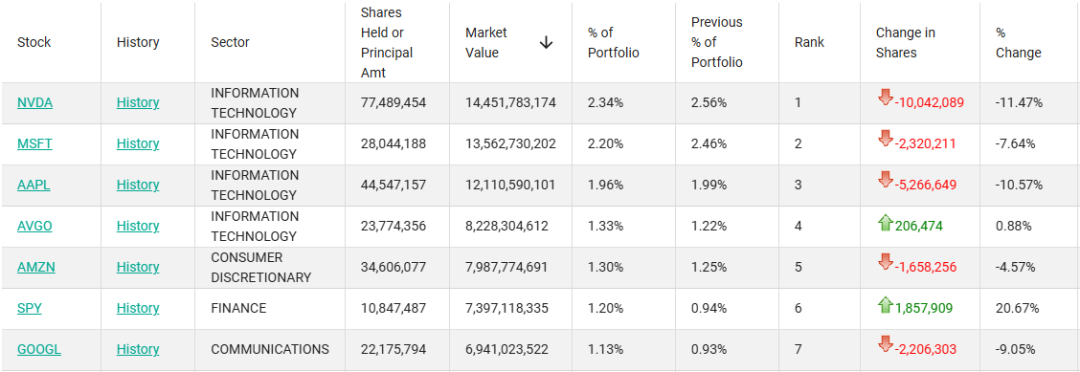 近日,瑞银集团和高盛相继向美国证券交易委员会(SEC)递交了截至2025年12月31日的第四季度持仓报告(13F),报告显示,两家机构均对多只美股 科技巨头进行了大手笔减仓。 具体来看,去年四季度,瑞银集团减持了1004.2万股英伟达,减持幅度达11.47%;减持微软232万股,减持幅度为7.64%;减持苹果526.7万股,减持幅度 为10.57%;减持亚马逊165.8万股,减持幅度为4.57%;减持谷歌220万股,减持幅度为9.05%。此外,瑞银集团对美光科技、甲骨文、AMD、西部数据等 科技股也进行了不同程度减持。 | Stock | History | Sector | Shares Held or | Market | % of | Previous % of | Rank | Change in | ଟିଚ | | --- | --- | --- | --- | --- | --- | --- | --- | --- | --- | | | | | Principal | > Value | Portfolio | Portfolio | | Shares | Change | | | | | Am ...