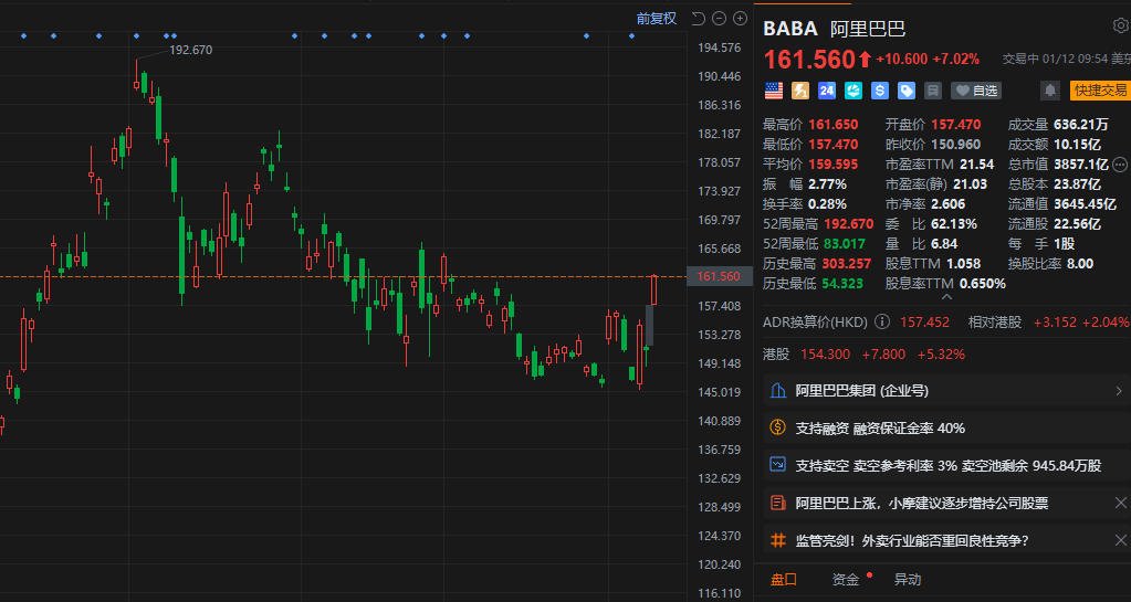 阿里巴巴(BABA.US)盘前涨逾4% 小摩建议逐步增持公司股票
