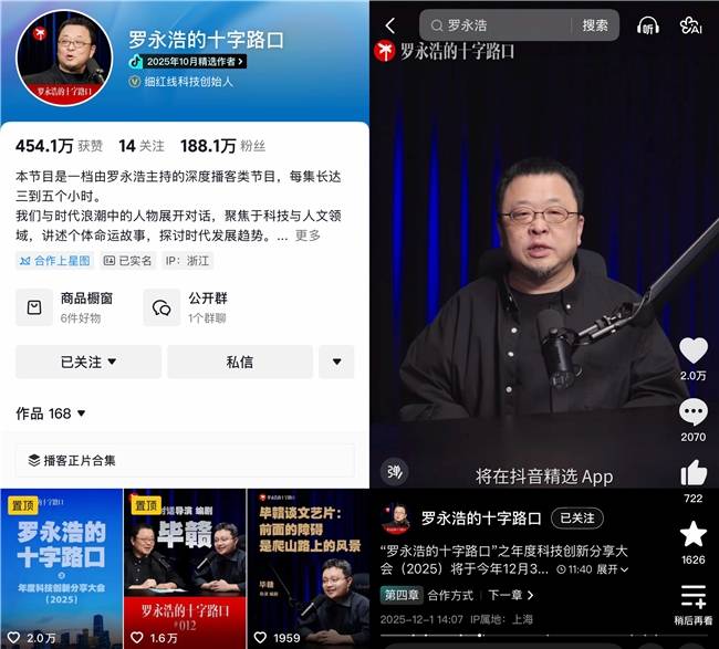 12月1日,罗永浩全网宣布,"罗永浩的十字路口"之年度科技创新分享大会(2025)将于今年12月30日 落地上海。本次活动由抖音精选和"罗永浩的十字路口"团队联合举办,大会主题演讲将在抖音精选App 直播。 罗永浩表示,本次科技创新分享大会将介绍一批令人印象深刻,但还没彻底走进大众视野的中国创新型 科技产品。大会将展示的产品,全部由罗永浩和产品团队主动选品,"选品最重要的第一条标准是创 新,如果没有创新,再好的产品也跟这次大会无关。"罗永浩称,他会精心编排所有的演讲内容,并亲 自在发布会上进行讲解。 罗永浩在视频中提及,"罗永浩的十字路口"除了要成为中国最好的播客,也致力于成为中国最好的科技 加速器,欢迎风险投资机构联系,尤其欢迎那些独特的创新项目。为此,他透露大会还有一个单独的板 块,会专门介绍目前还不成熟的创业公司做出的不成熟创新产品。 这是罗永浩自2018年锤子手机业务调整后,阔别科技发布会舞台七年来的首次重磅回归。此前,罗永浩 推出"罗永浩的十字路口"视频播客,抖音精选是该播客的首发平台以及长期内容合作平台。自今年8月 19日上线抖音精选以来,罗永浩先后对谈理想汽车创始人李想,小鹏汽车创始人何小鹏,脱 ...