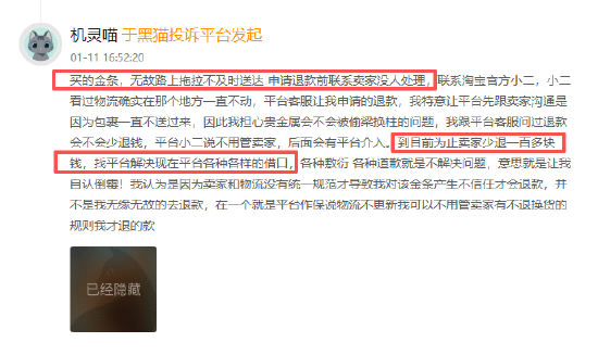 1月黑猫投诉综合电商领域红黑榜:淘宝贵金属交易乱象频发,消费者维权困难