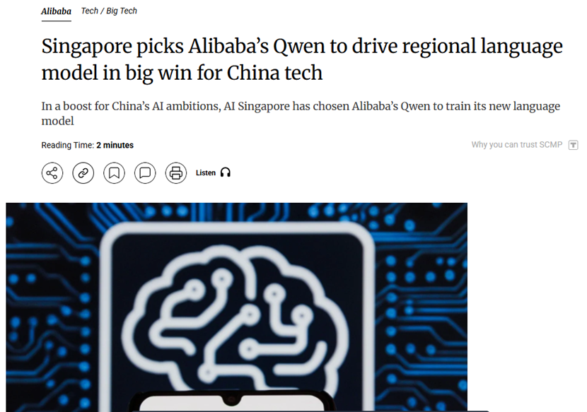 新加坡国家AI计划转向阿里千问,硅谷模型正在失去全球市场?