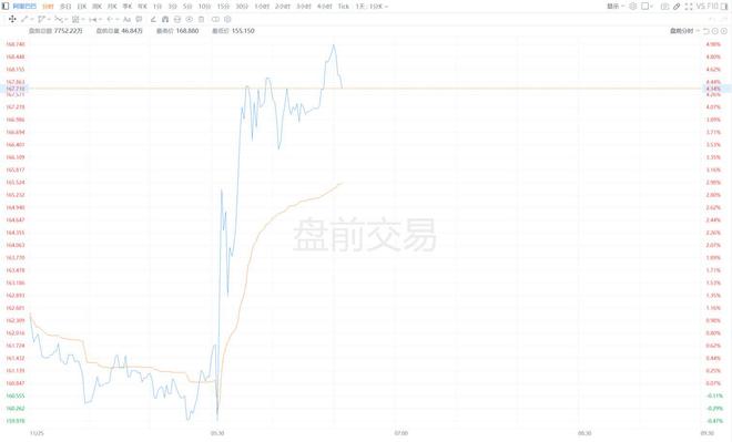 美股异动|阿里巴巴盘前大涨5% AI+云与消费两大核心业务实现强劲增长