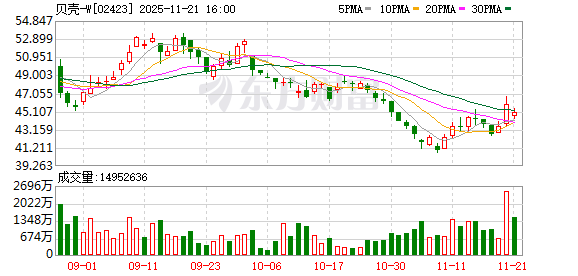 贝壳-W11月19日斥资约300万美元回购53.6万股