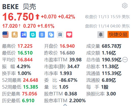 美股异动丨贝壳盘前涨超1% 绩后获多家大行上调目标价