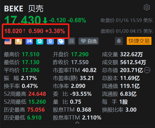 美股异动丨贝壳盘前涨超3% 持续回购+近期政策利好
