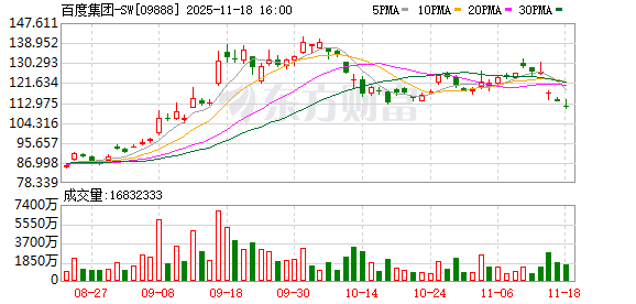 百度公布第三季度营收下滑7%后,其美股下跌4.1%。 来源:滚动播报 ...