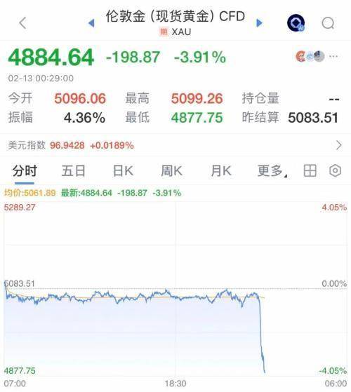 伦敦金现 © Q < ▲ ▼ AUUSDO 圆 4918.960 4988.930 昨收 4980.360 4980.360 4912.800 买价 61.400 1.25% 开 4918.440 卖价 4982.160 银行金价 1108.30 0.90% > 同花顺黄金 ○ 相关 ETF 1 T+0 金 ETF南方 -1.16% ●> 月K 分时 日K 五日 更多 ▼ 圖K (0) 日线 MA5:5006.222 10:4942.671 20:4981.724 筹码 均线 ▼ 30:4834.319 5721.844 5596.680-> 5254.670 4787.496 4320,322 F 2-3984.290 2025-11-07 11-28 2026-01-20 02-13 12-24 同日,美股大型科技股普遍下跌,苹果跌幅达5%,博通下跌超3%,亚马逊、Meta和特斯拉跌超2%, 英伟达跌超1%,谷歌A微跌。 今年以来,随着一些AI工具的推出,部分板块遭受冲击,包括软件公司、出版商、金融服务企业等。 投资者担心,这些AI工具可能复制它们的业务模式,或至少侵蚀其利润率。 中概股普遍下挫,纳斯达克 ...