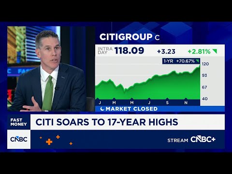 Shares of City jumping nearly 3% today, hitting levels not seen in more than 17 years. Our next guest says the stock will be the top big bank performer next year. For more on the 2026 outlook for financials, KBW's head of US Bank research, Chris McGrady joins us here on set.KBW is a steifle company. Chris, great to have you with us. >> Great to see you.>> Um, so why City. What's the backdrop here. >> Well, City's in the midst of a multi-year um turnaround, right.They're simplifying the business. They're exi ...