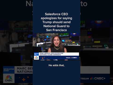 Meanwhile, Salesforce CEO Mark Beni off facing some Silicon Valley push back over his support for a National Guard deployment to San Francisco. Prominent startup investor Ron Conway resigning from the board of the Salesforce Foundation yesterday. And this morning, Lorine Powell Jobs out with an op-ed challenging Benoff's response to the criticism, writing, quote, "In his eyes, generosity is an auction and policy is the prize awarded to the highest bidder." Benov spoke to our Jim Kramer about the issue earli ...