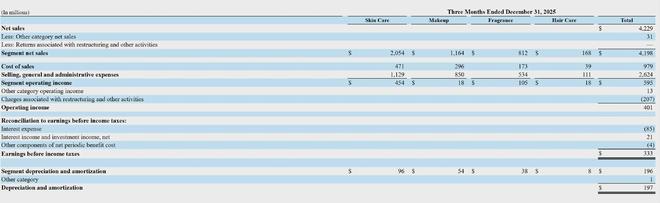 2月6日,雅诗兰黛集团发布2026财年第二季度财报。当中披露,公司本季度净销售额增长 6%,达到 42.29亿美元;有机净销售额增长 4%。净利润层面扭亏为盈,实现盈利1.62亿美元。 报告期内,公司调整后毛利率增加 40 个基点,从 76.1%增至76.5%。这主要得益于公司利润恢复与增长 计划(PRGP)带来的净效益,大幅抵消业务结构变化及通胀因素等带来的影响。利润恢复与增长计划 的效益源于运营效率的提升,包括更具竞争力的采购策略、费用优化,以及过剩与滞销库存的减少。 报告期内,公司营业利润率为 9.5%,较上年同期的 -14.5% 显著改善。调整后营业利润率扩大 290 个基 点,从 11.5% 提升至14.4%,主要得益于利润恢复与增长计划带来的净效益。尽管员工激励成本回归常 态,该净效益仍有效降低了非面向消费者的费用开支,并为增加面向消费者的投资提供了资金支持。 | (lis relationis) | | | | Three Months Ended December 31, 2025 | | | | | --- | --- | --- | --- | --- | --- | --- | --- ...