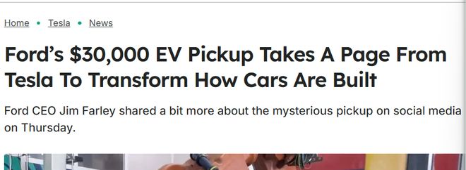 福特押注电动车“通用平台”:采用特斯拉同款铸件,首发3万美元皮卡