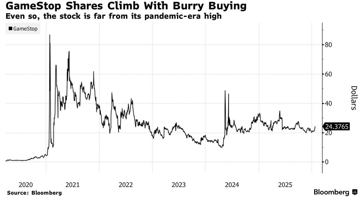 Group 1: Michael Burry's Investment Strategies - Michael Burry gained fame for shorting the housing market and subprime mortgages, leading to significant profits during the 2008 financial crisis [2][3] - He has a history of making successful predictions, including shorting overvalued tech stocks before the dot-com bubble burst in 2000 and warning about meme stocks and crypto leverage in 2021 [5][6] - Burry recently closed his hedge fund, Scion Asset Management, citing a disconnect between his valuation estimates and market prices [6] Group 2: GameStop Investment - Burry disclosed his recent purchases of GameStop Corp. (NYSE: GME), a video game retailer that gained viral attention in early 2021 due to retail investors on Reddit's r/WallStreetBets [8] - The stock price of GameStop surged from less than $20 to nearly $500 within a few days due to significant buying pressure [9] - Burry expressed his expectation of buying GameStop shares at what may soon be 1x tangible book value / 1x net asset value [10]