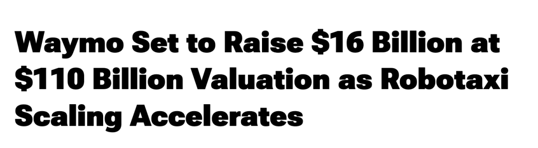 Waymo寻求融资约160亿美元 估值逼近1100亿美元