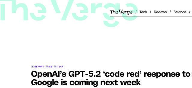 这一决定源于OpenAI内部本周启动的"红色警报"机制。公司CEO萨姆·奥尔特曼在内部会议中表示, Gemini 3的强势表现促使公司必须加快技术迭代步伐。据悉,新版本的开发重点将从以往的功能创新转 向提升模型运行速度、系统稳定性以及用户定制化体验。(青云) 来源:环球网 【环球网科技综合报道】12月6日消息,据The Verge报道称,面对谷歌最新发布的Gemini 3模型在性能 评测中的领先优势,OpenAI正加速推进其下一代人工智能模型的发布进程。据知情人士透露,OpenAI 计划最早于12月9日推出GPT-5.2版本,较原定发布时间提前近两周。 ...