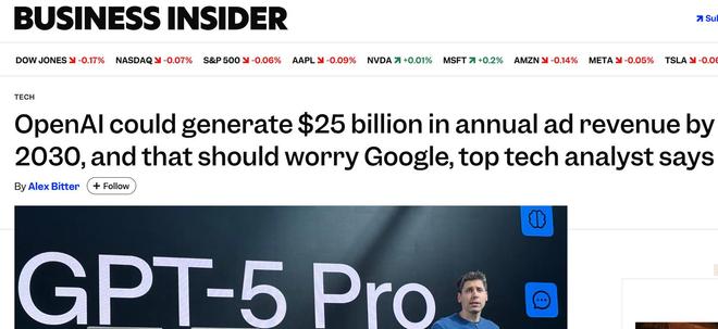 分析师称OpenAI广告业务2030年将达250亿美元,对谷歌搜索构成实质性挑战